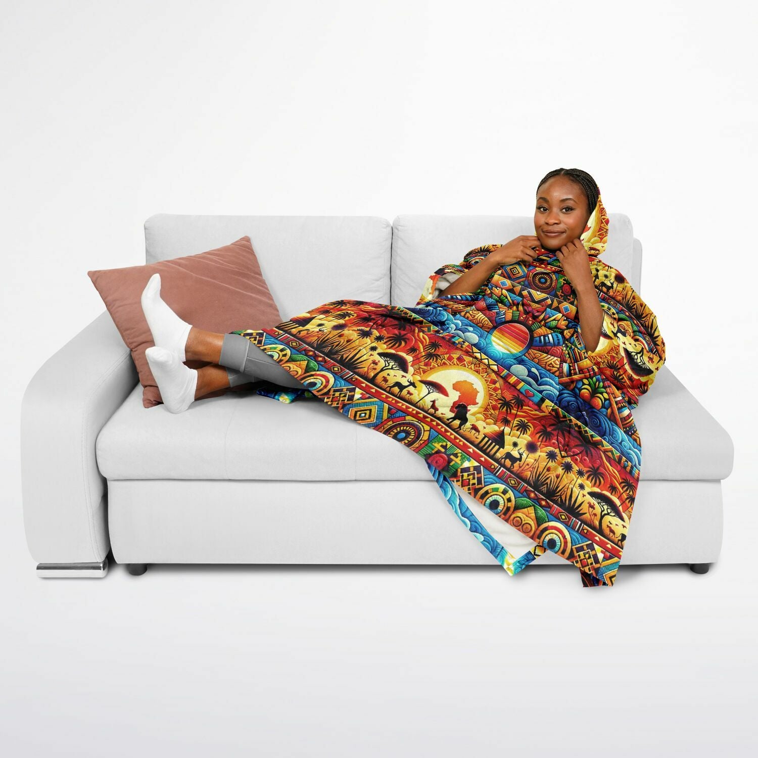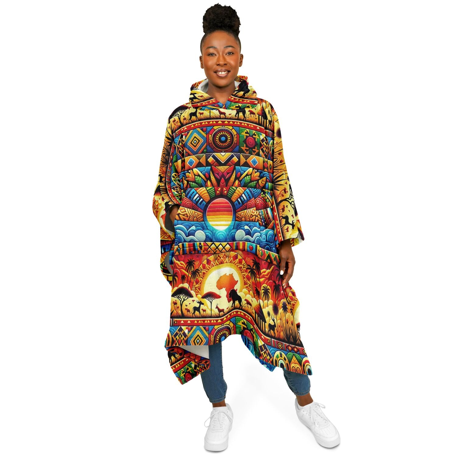 - Features: Front pocket, hood, and sleeves for wearing as a poncho or using as a traditional blanket