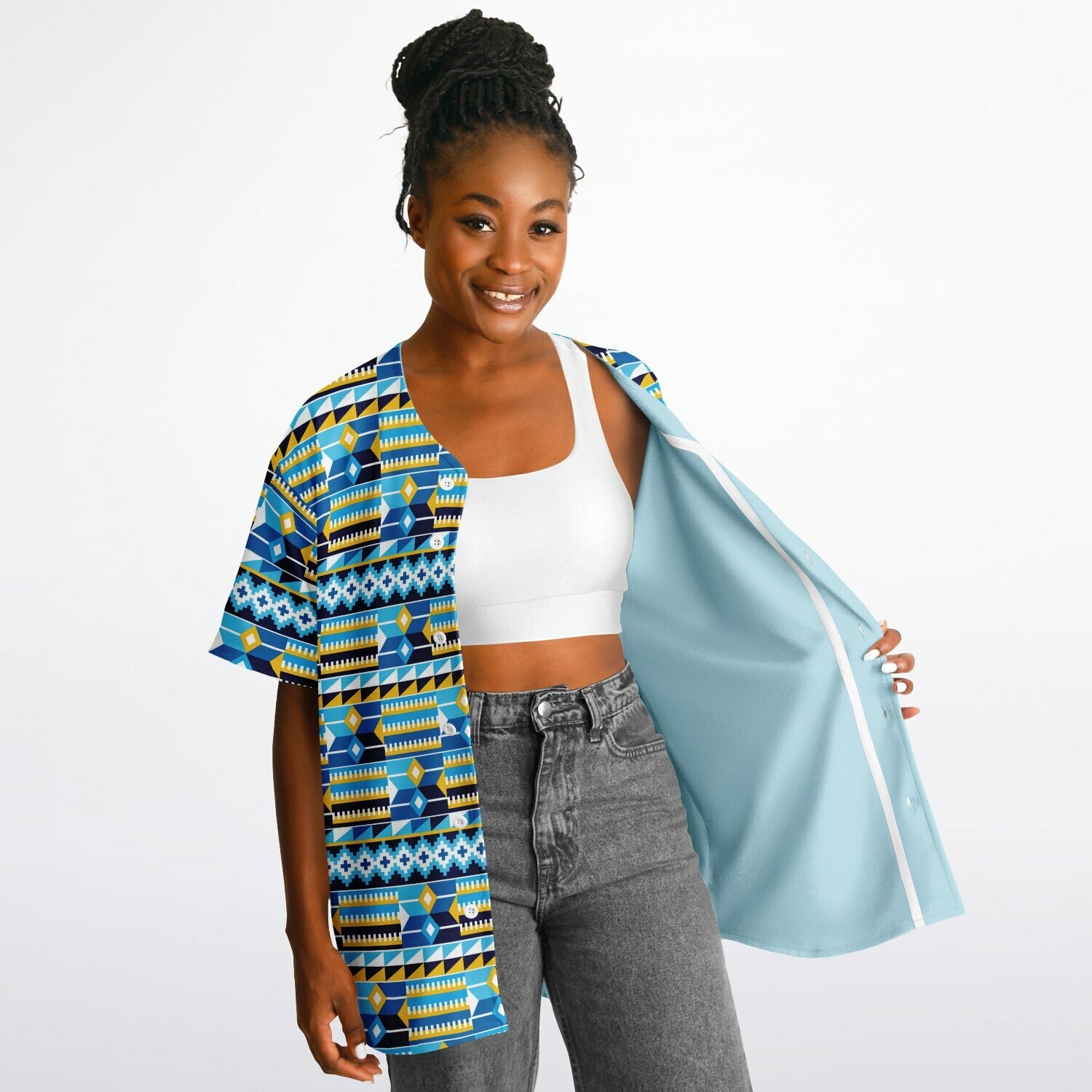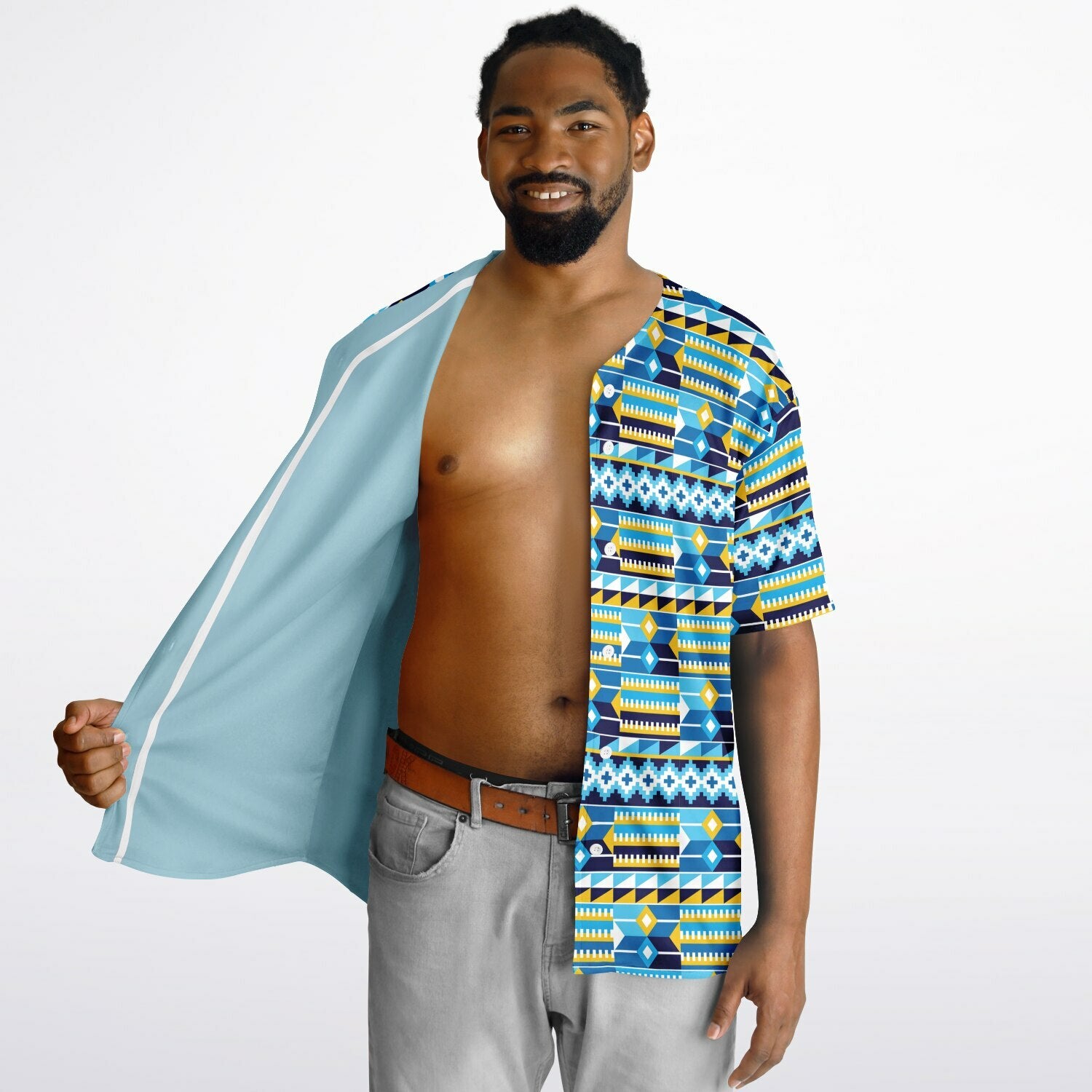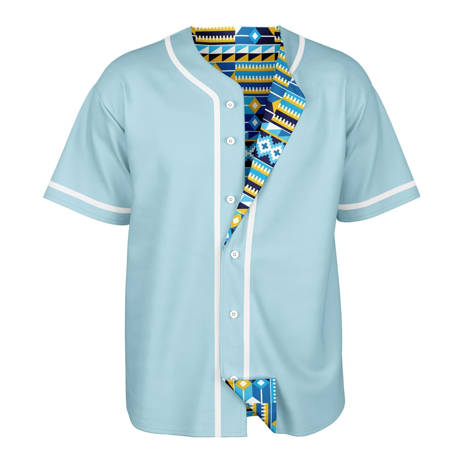 Blue Kente Patterned & Light Blue Reversible Baseball Jersey