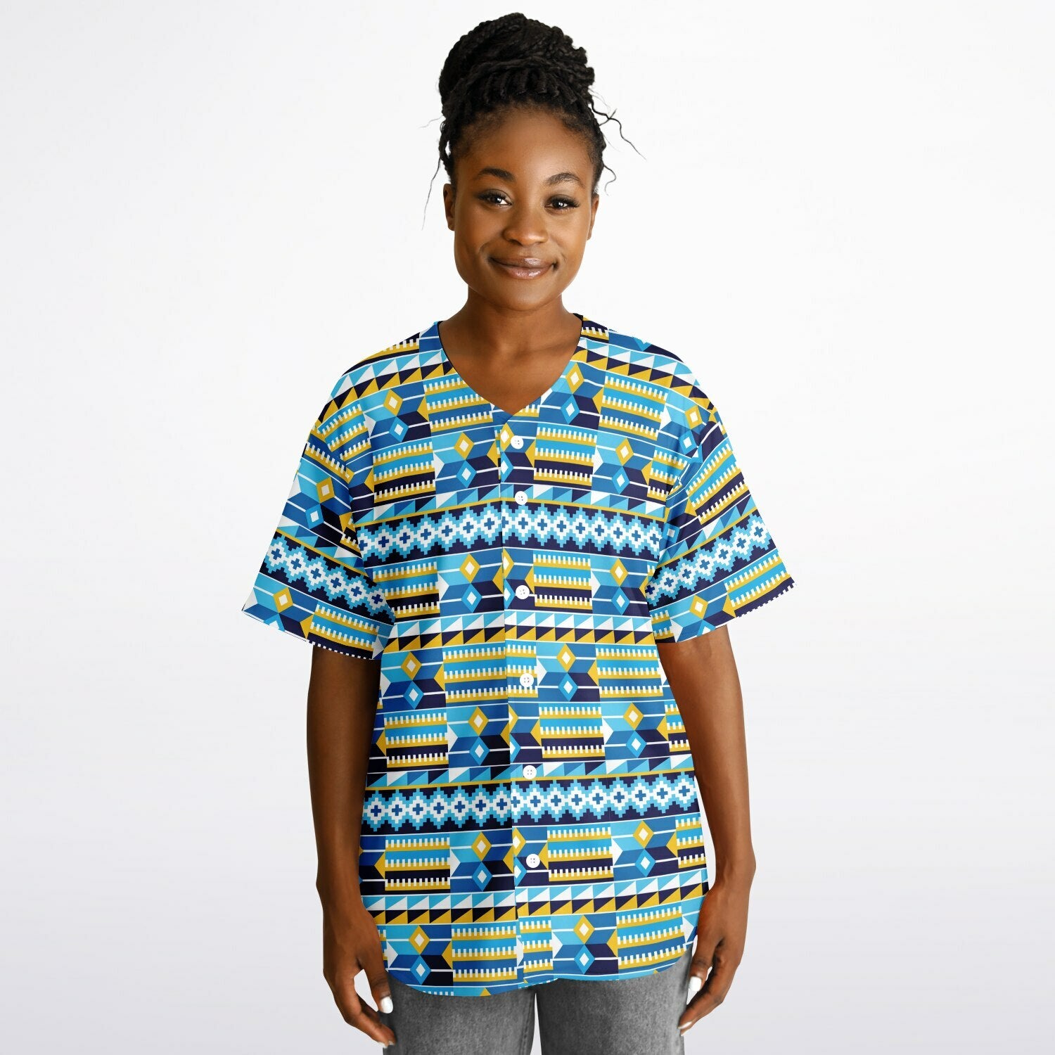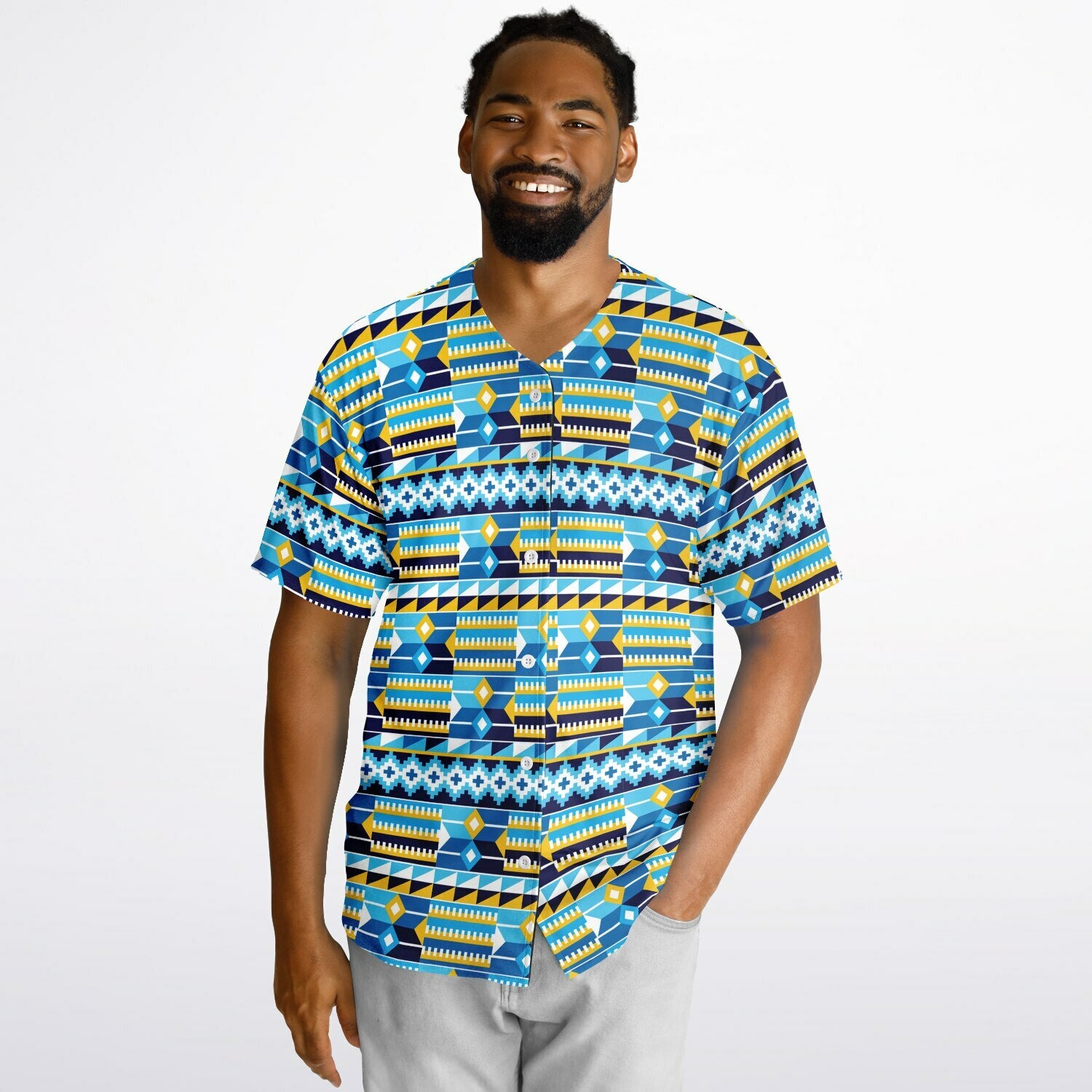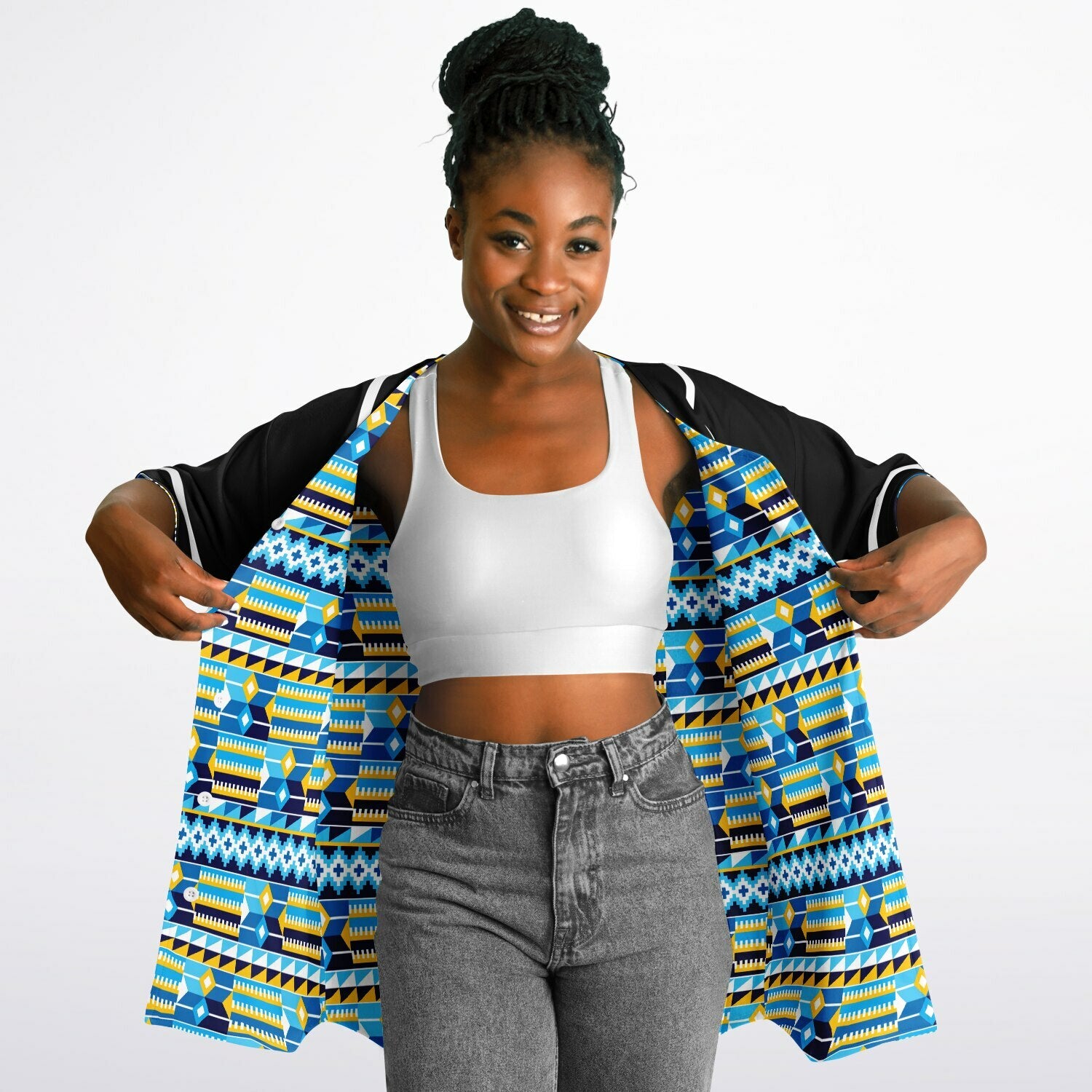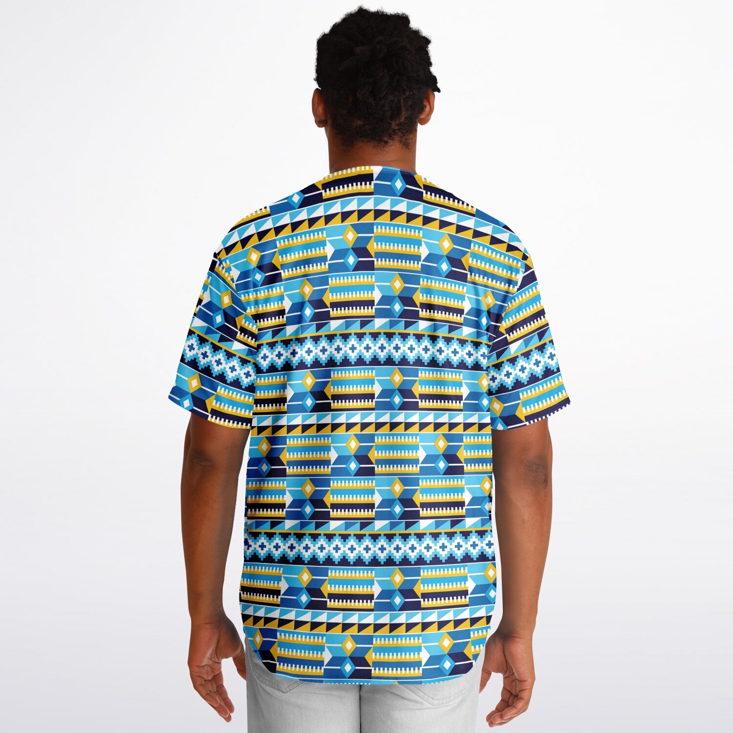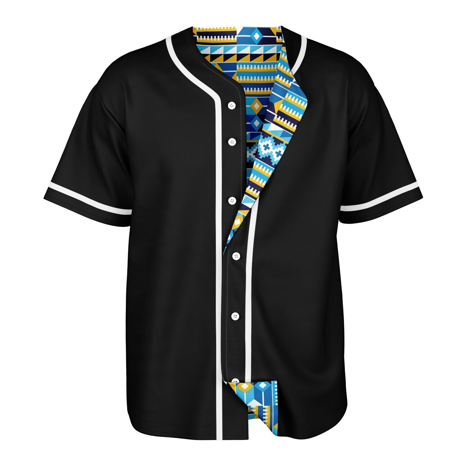 Blue Kente Patterned & Black Reversible Baseball Jersey