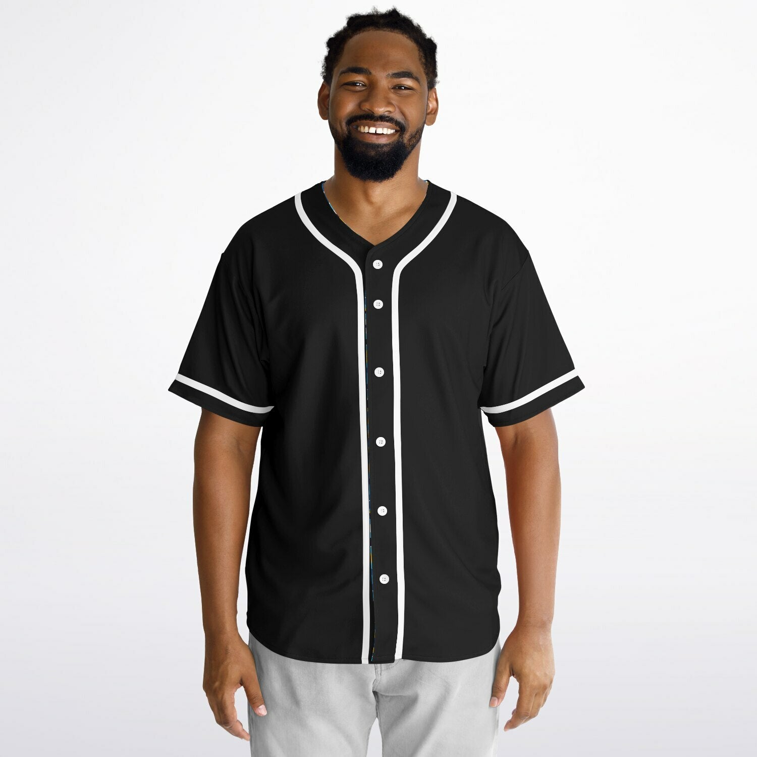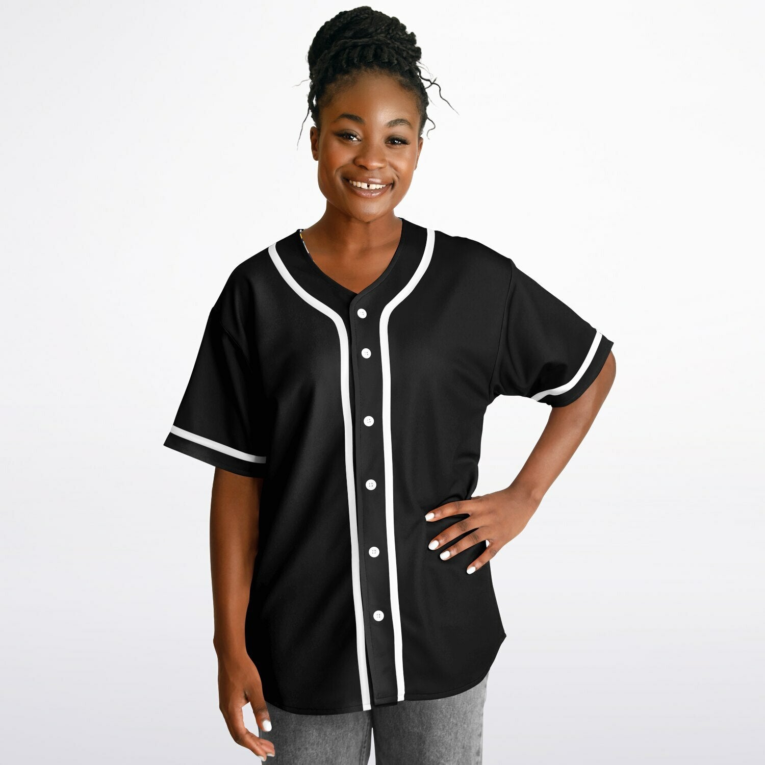 Elevate your style with our reversible baseball jersey, blending fashion and sustainability. Easily switch from a solid colour to a patterned design. Comfortable and stylish, it's a wardrobe essential!