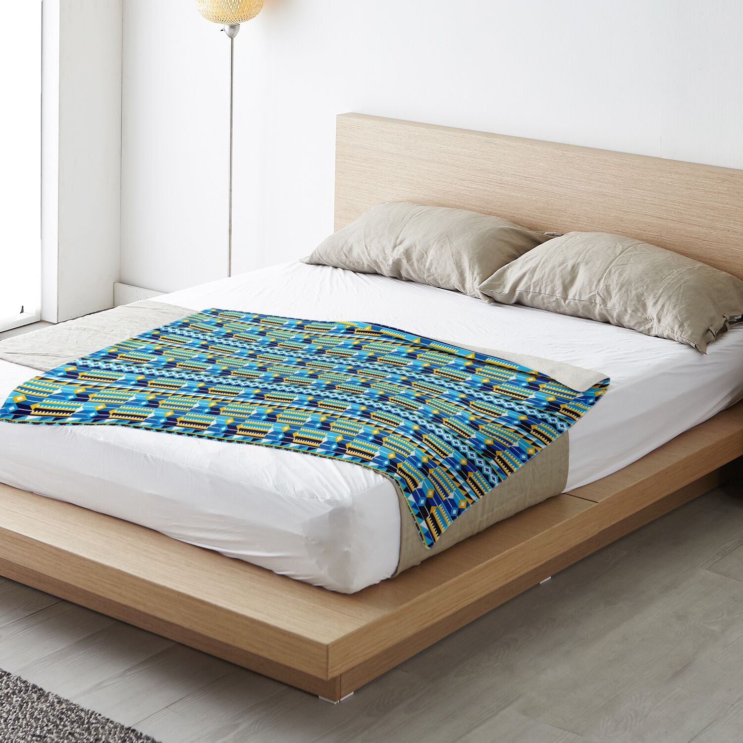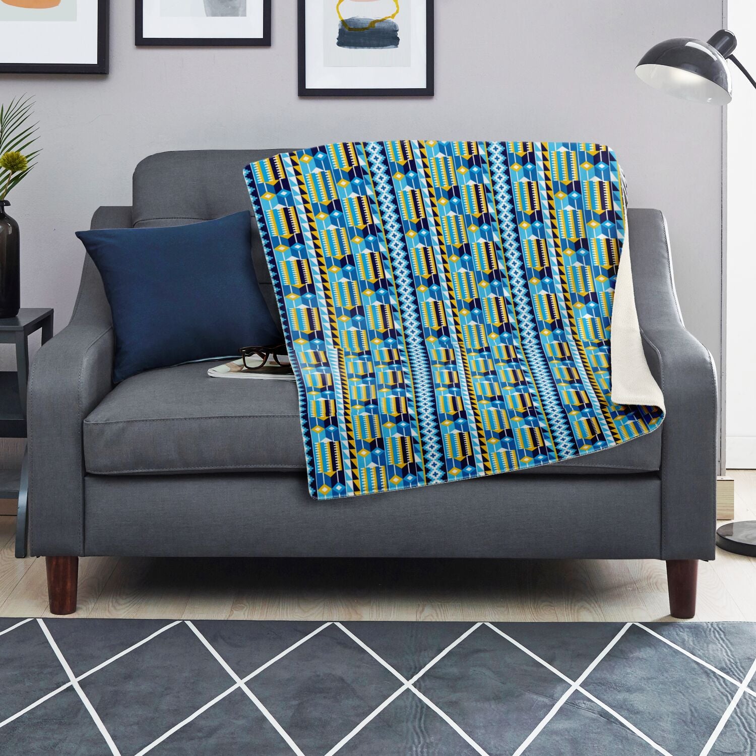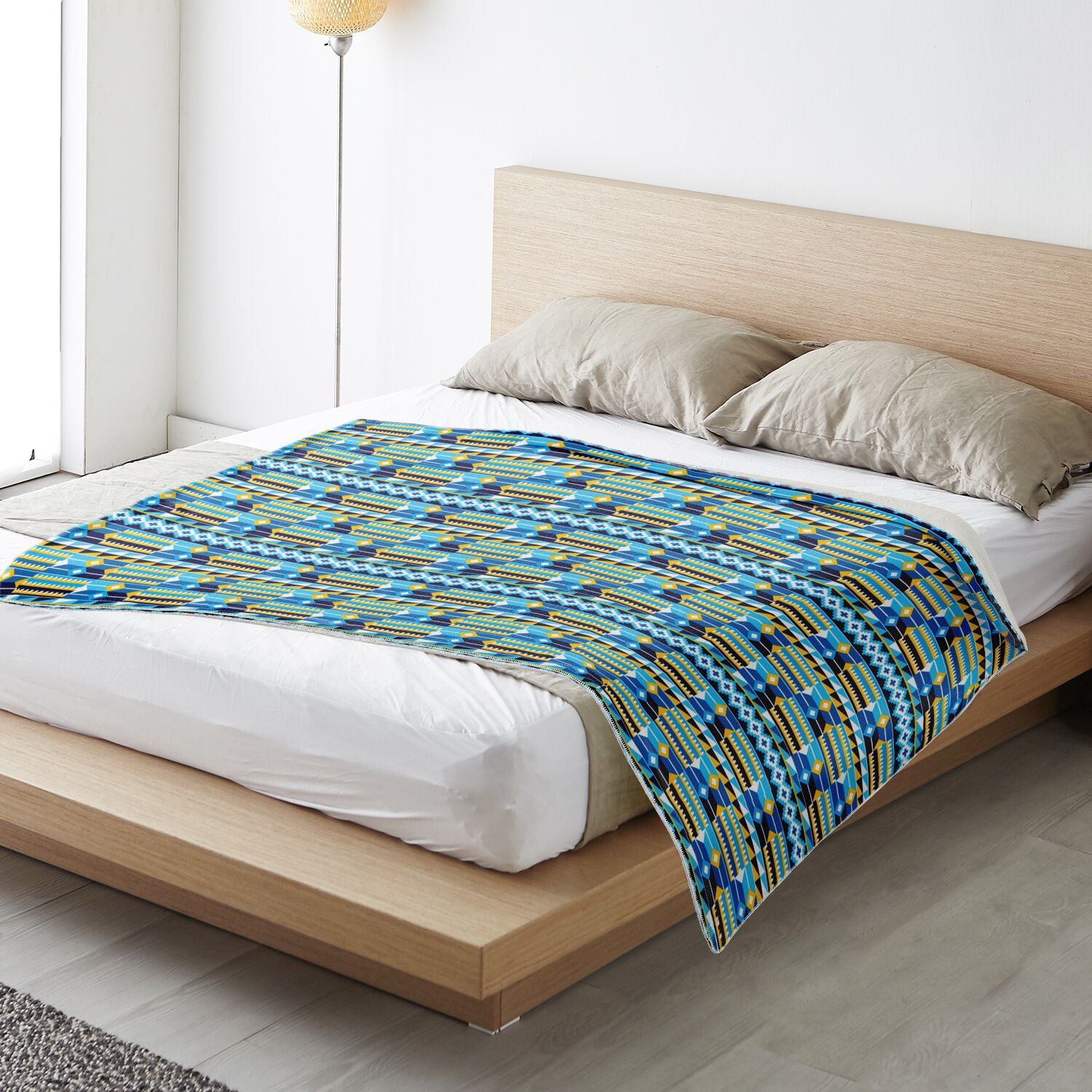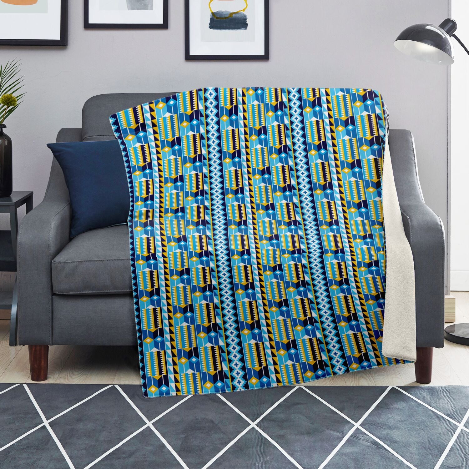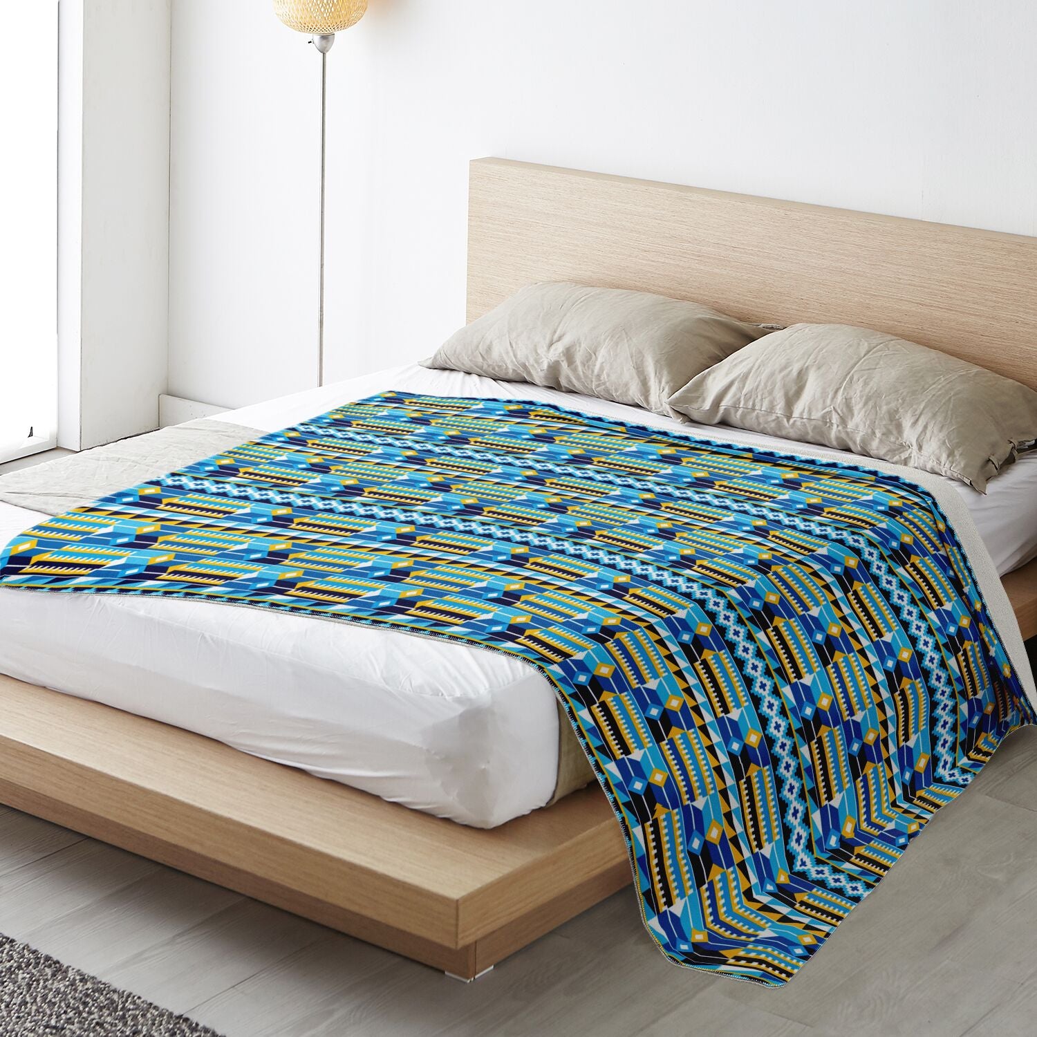 Blue Kente Patterned Premium Microfleece Blanket