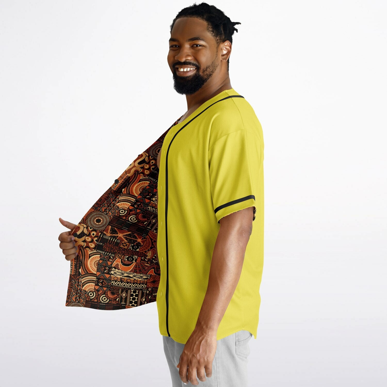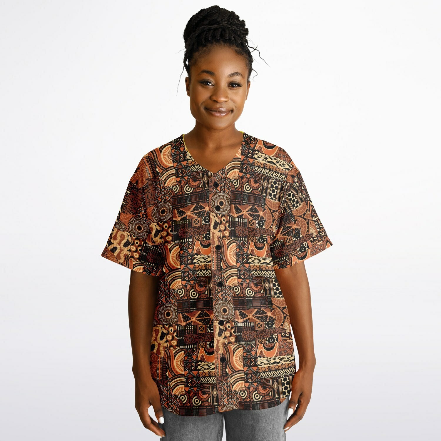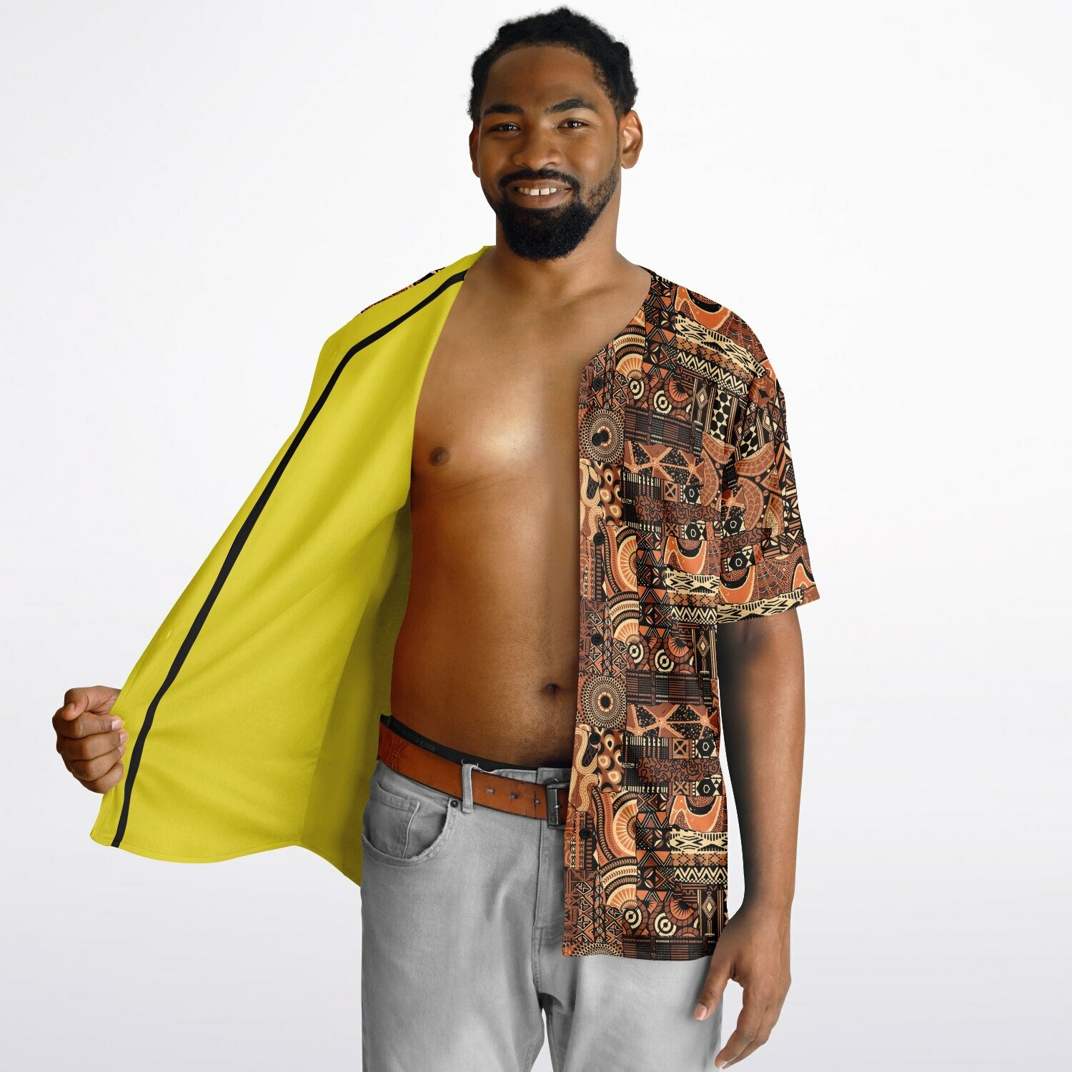Brown Mudcloth & Yellow Reversible Baseball Jersey