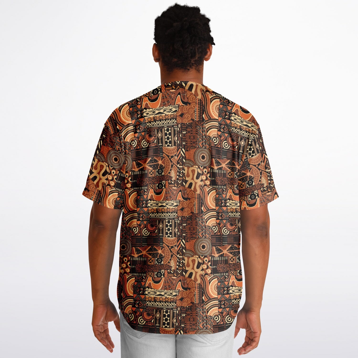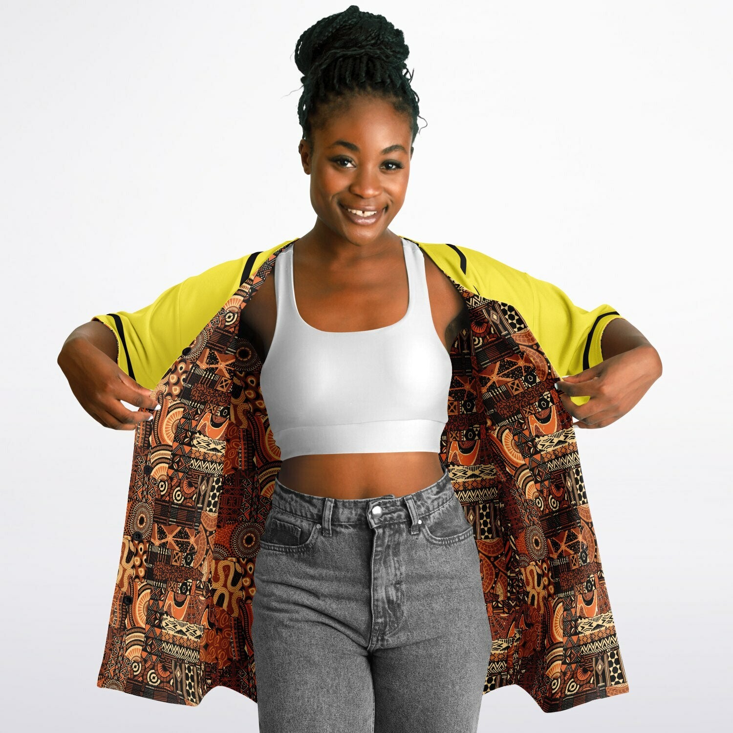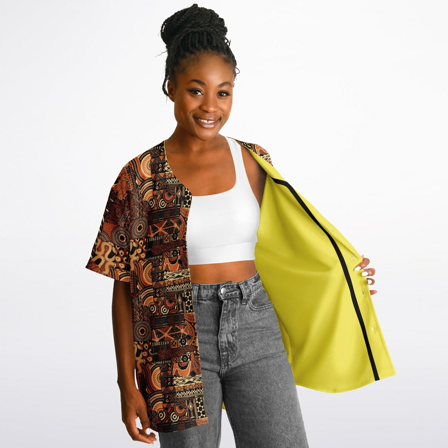 Brown Mudcloth & Yellow Reversible Baseball Jersey