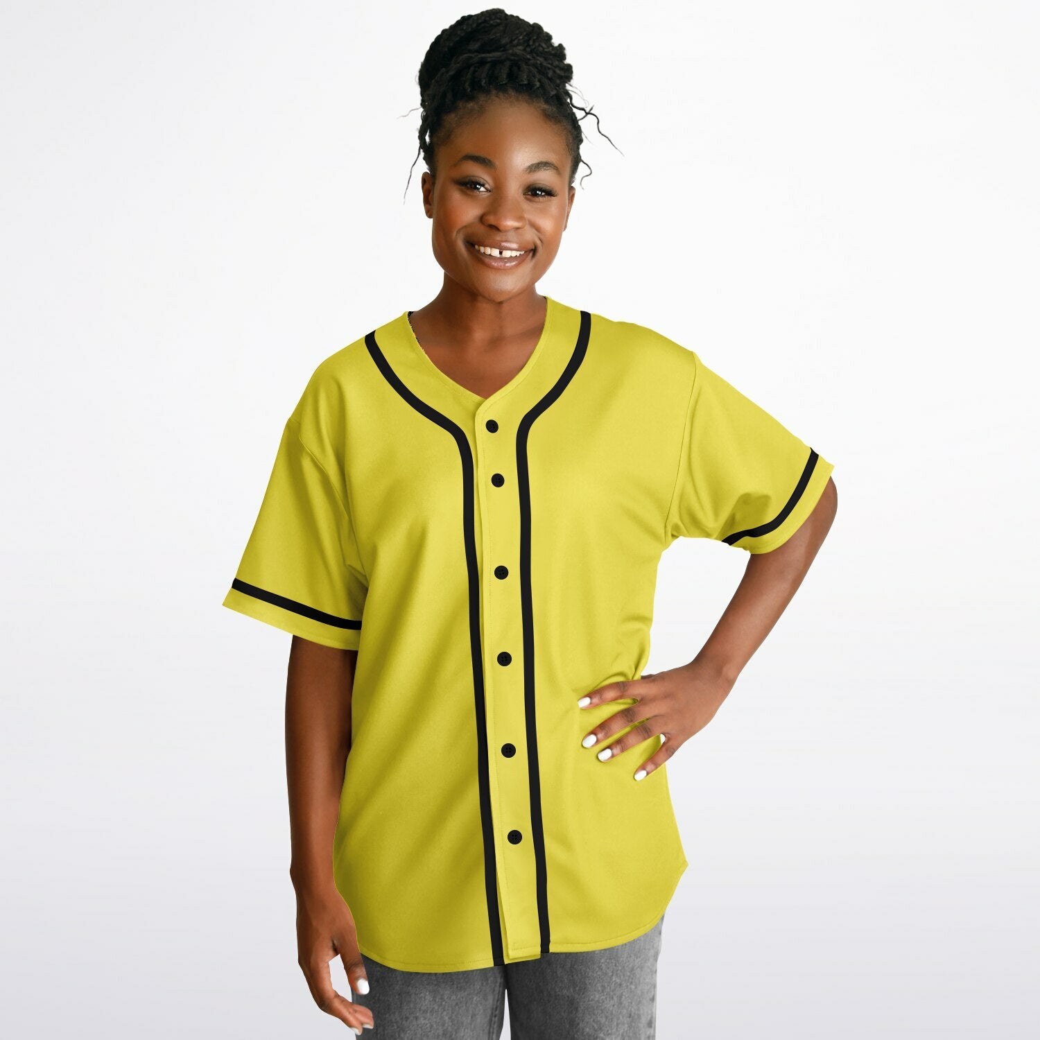 Elevate your style with our reversible baseball jersey, blending fashion and sustainability. Easily switch from a solid colour to a patterned design. Comfortable and stylish, it's a wardrobe essential!