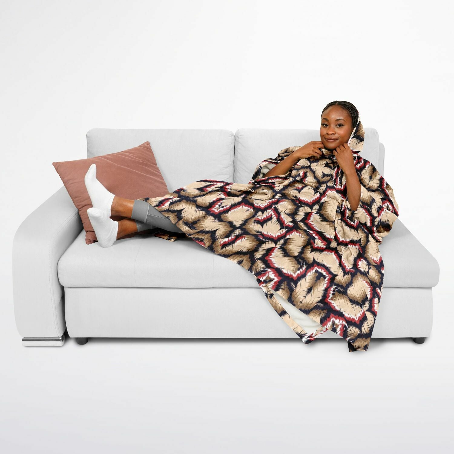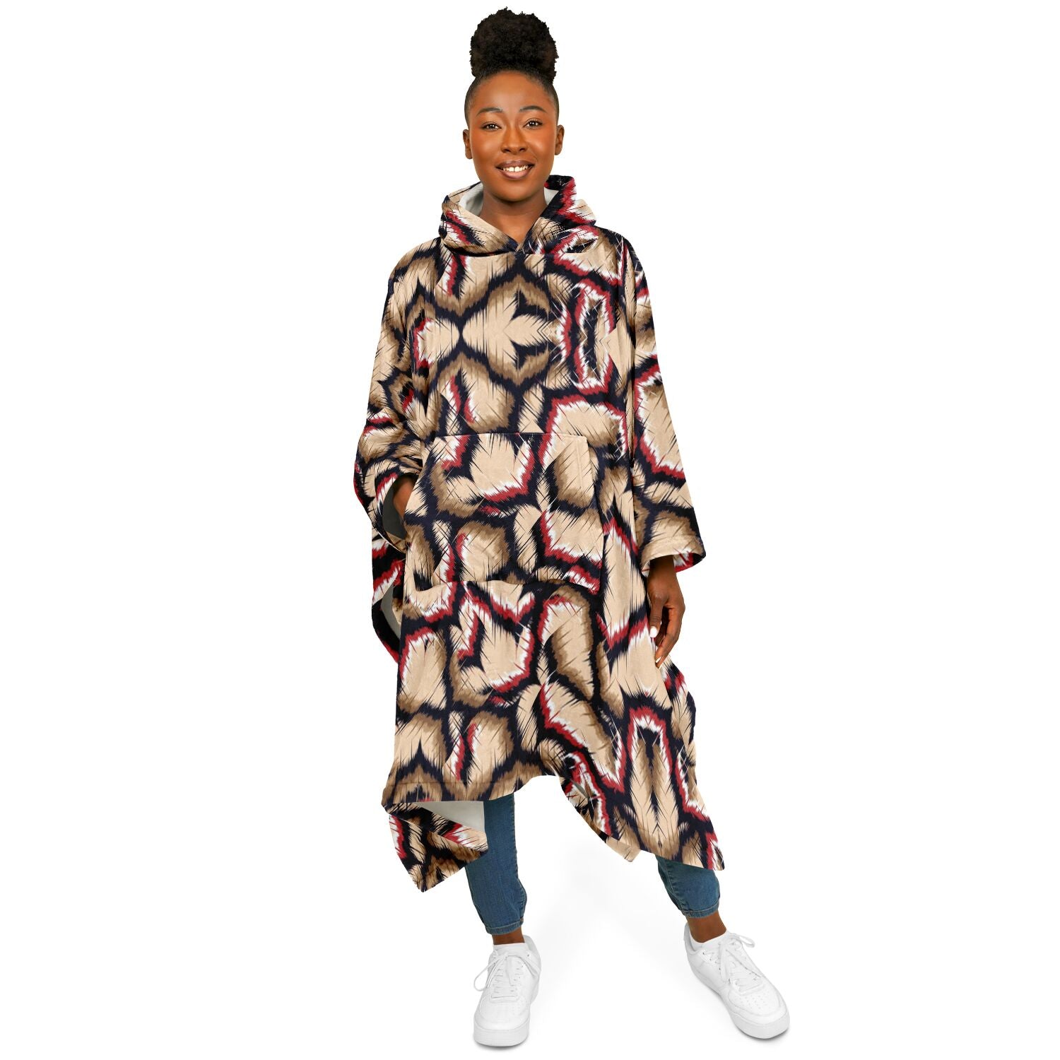 - Features: Front pocket, hood, and sleeves for wearing as a poncho or using as a traditional blanket
