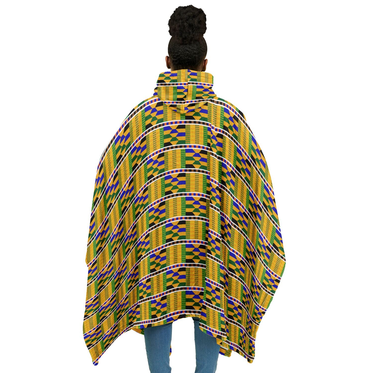 Yellow Kente Patterned Flannel Blanket Poncho