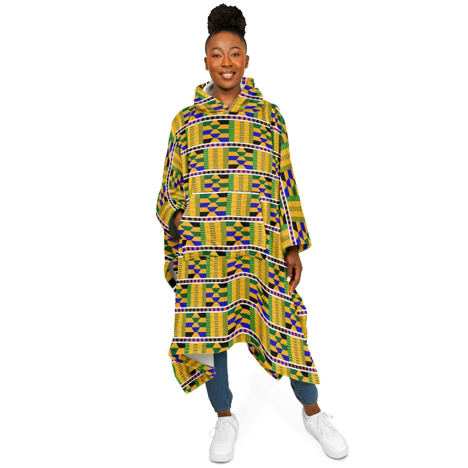 - Features: Front pocket, hood, and sleeves for wearing as a poncho or using as a traditional blanket